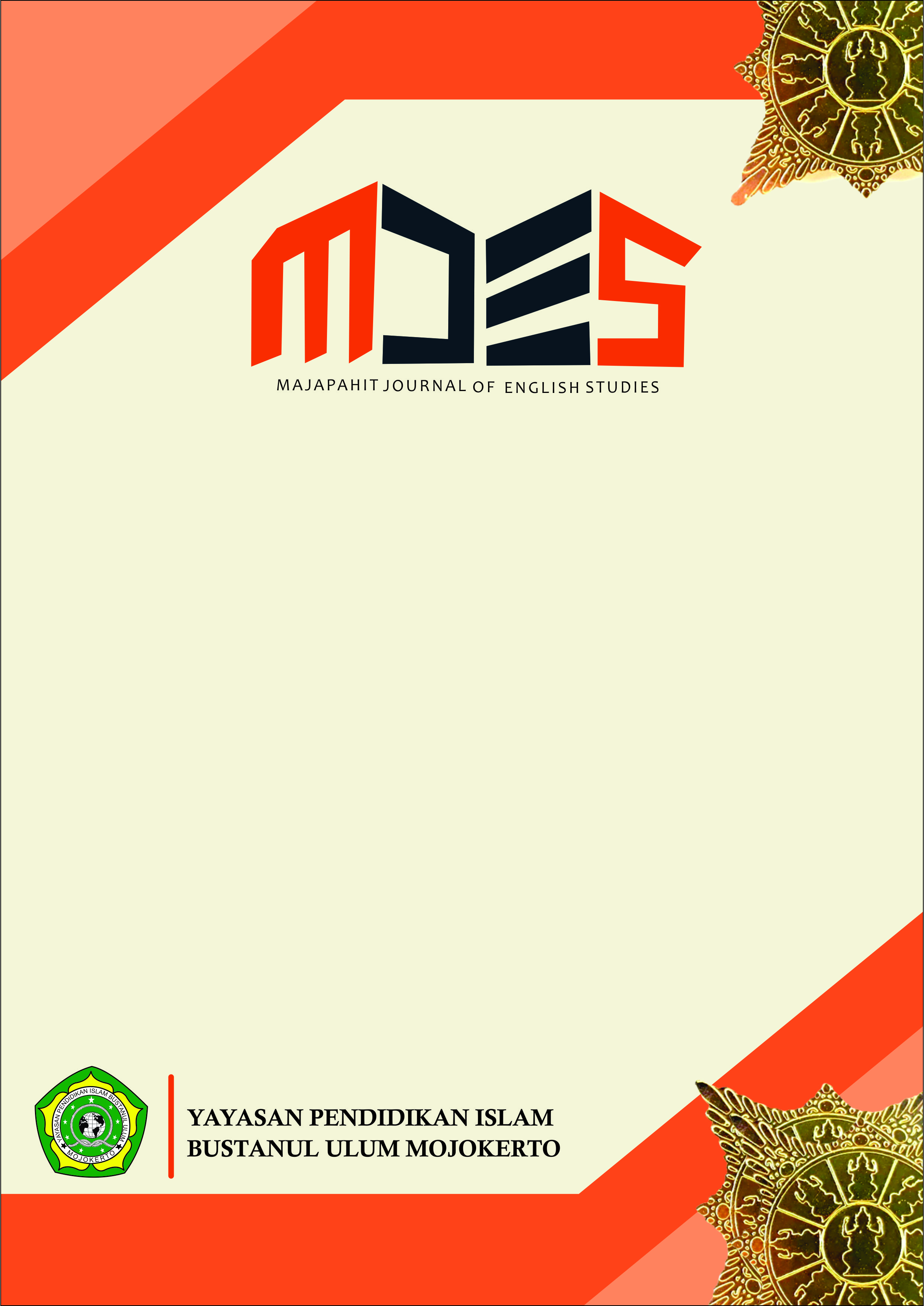Majapahit Journal of English Studies is a journal of English language teaching, linguistics, and literature. The Journal provides in-depth research and analysis in various areas, including English language teaching (methods, strategies, teaching media, assessment, etc.), English Linguistics (phonology, syntax, morphosyntax, semantics, sociolinguistics, etc.), and English literature (including comparative studies and the implementation of literature in English language teaching). It publishes the issues twice a year, in March and September.